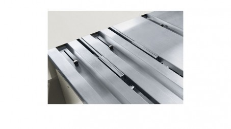 Electrically-operated back gauge, reference PTSL-BAE2.5-1500, range from 10 to 1500mm, gauge managed by the numerical control of the folding machine. The gauge includes the back table to support large-sized metal sheets, 2 lines of 8 gauge fingers. NB: option to be planned with the order of the folding machine and require pressurized air supply.