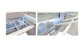 Barras de apoyo de chapas traseras automáticas para cizalla CGM3080, referencia CGM3080-PEIGNE. Este dispositivo está conectado directamente a la barra de corte y permite a las barras de apoyo colocarse automáticamente en posición alta para sostener la chapa y en posición baja para enviar la chapa cortada en la bandeja
