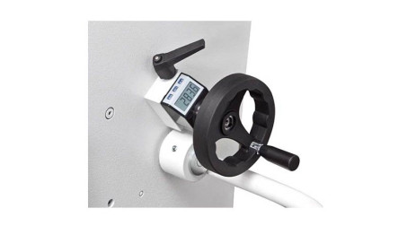 Butée arrière à courroie référence PVXBC2040, course 5 à 750 mm pour plieuses modèles PVX2040 et PVX2040T. Cette butée à commande latérale par volant et réglable par compteur digital est équipée de 4 doigts repositionnables sur la longueur