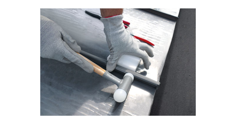 Il suffira de placer le tas face au pli à réaliser et frapper la matière au maillet pour former le profil mâle et préparer le pli femelle. Les avantages par rapport à la main de fer traditionnelle en métal résident dans son format compact, sa légèreté et sa surface lisse évitant le marquage de la matière, il sera très facile à ranger dans la caisse à outil pour le travail sur le chantier.